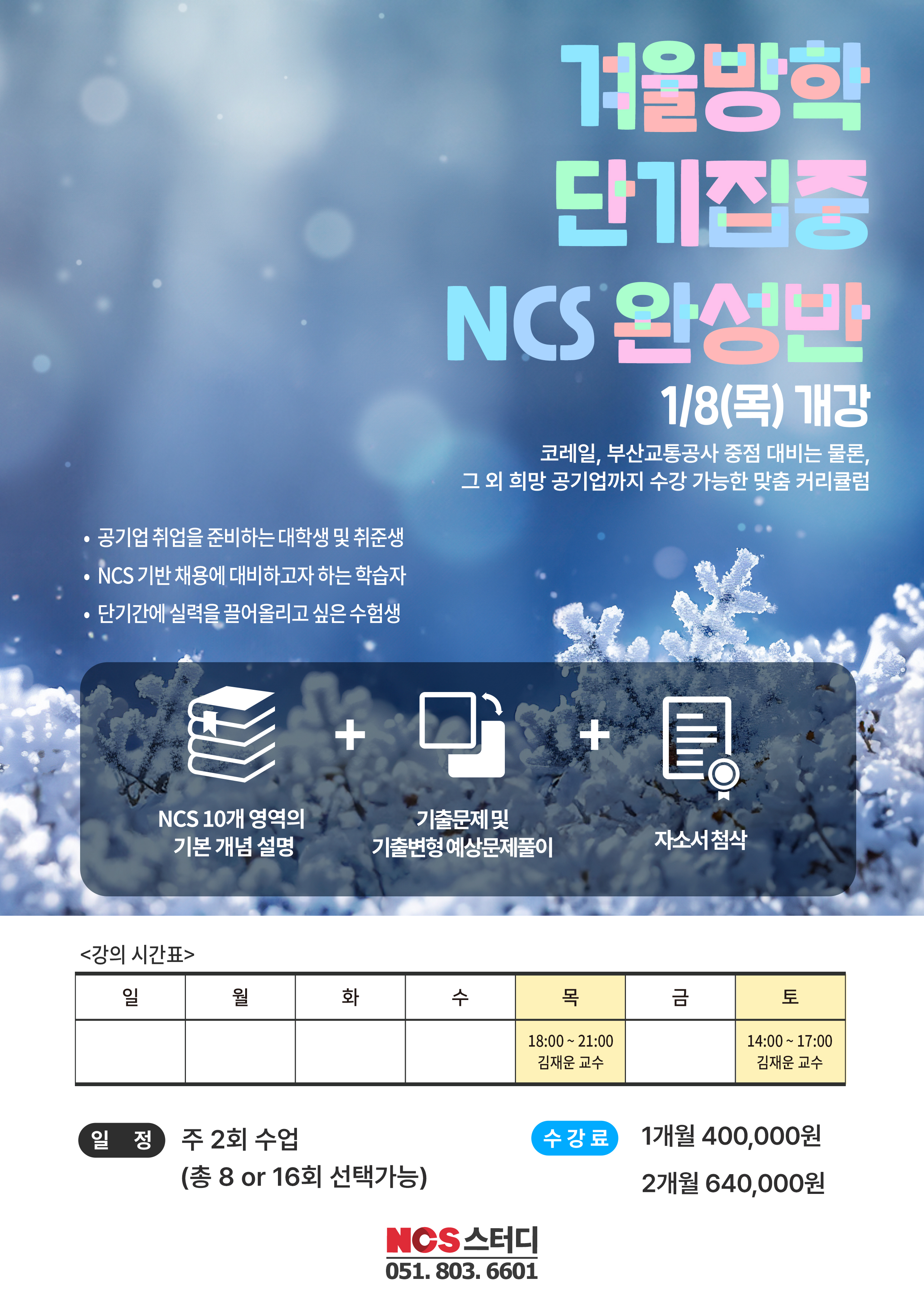 겨울방학 단기집중 NCS직업기초능력 2026년 1월 8일 (목) 개강