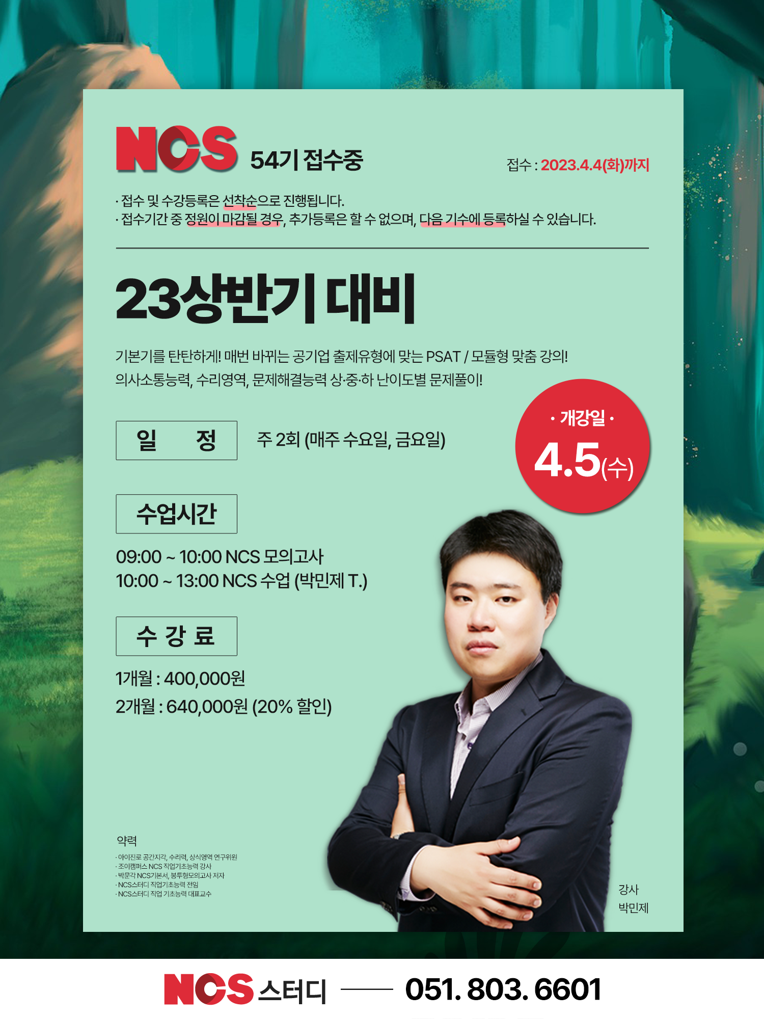 23상반기 대비 NCS직업기초능력 4월 5일 (수) 개강