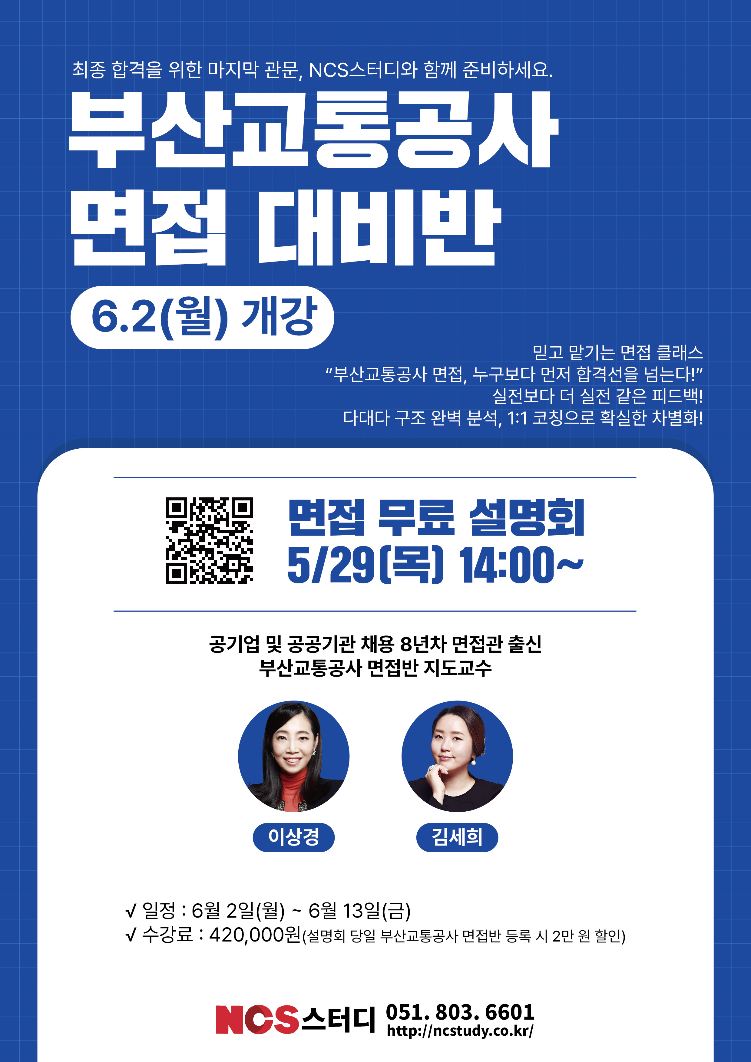 2025 부산교통공사 면접 대비반 6/2(월) 개강!