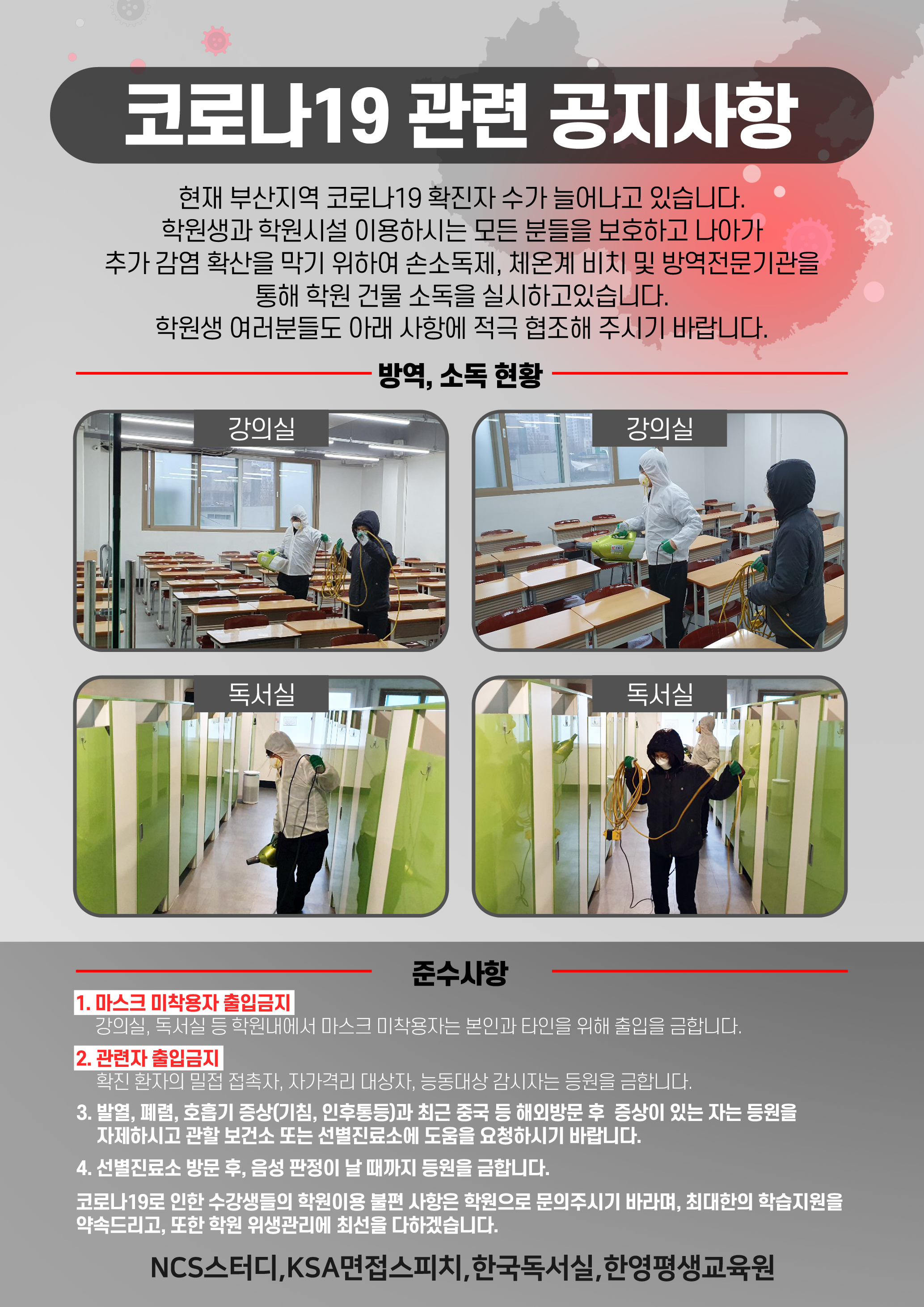 코로나19 방역안내 및 학원이용 준수사항