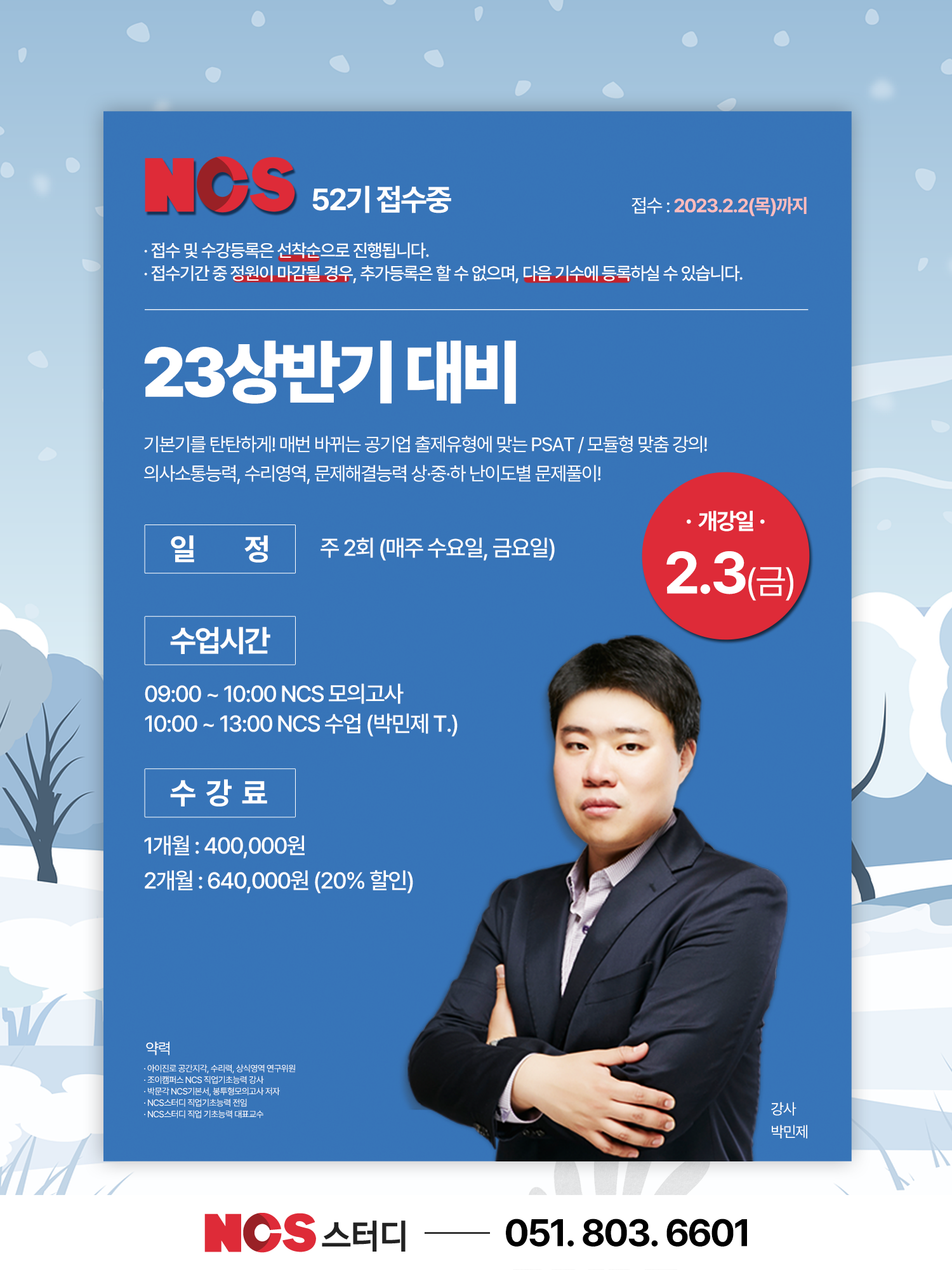 23상반기 대비 NCS직업기초능력 2월 3일 (금) 개강
