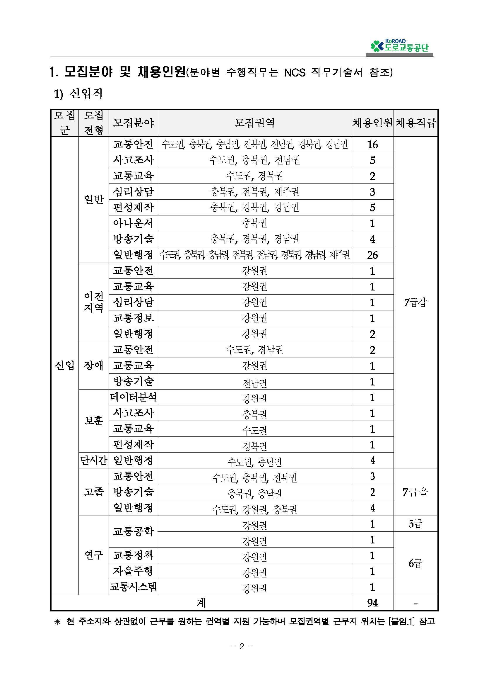 2020년도 도로교통공단 NCS기반 신규직원 공개채용 공고