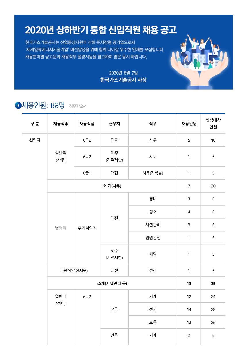 2020(주)한국가스기술공사 상,하반기 통합직원 공개채용