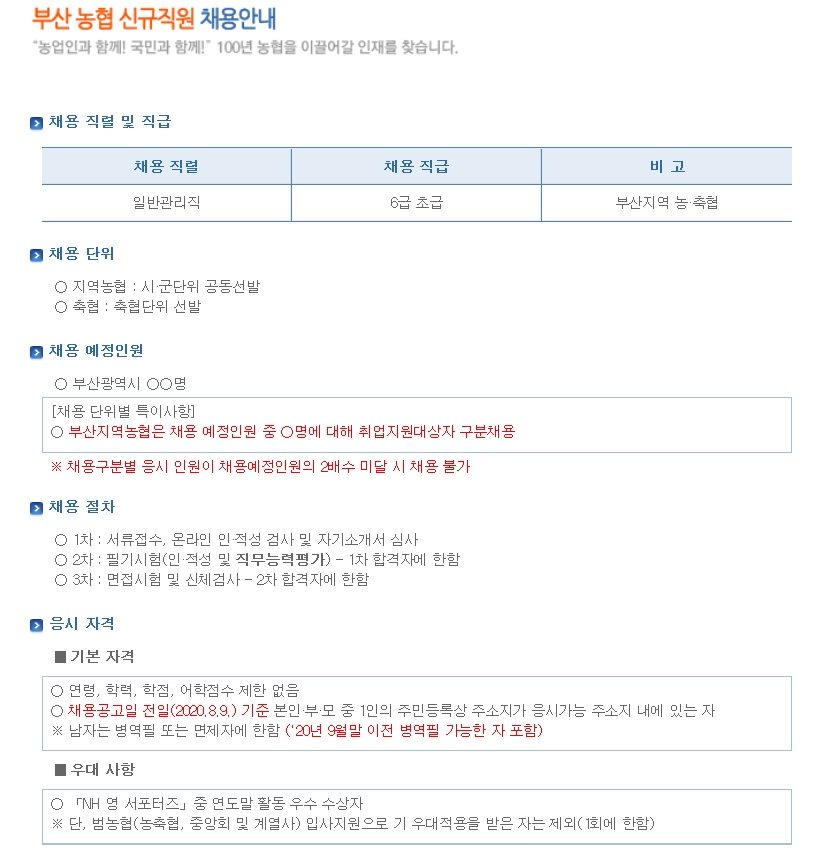 2020 하반기 전국 농,축협 신규직원 채용