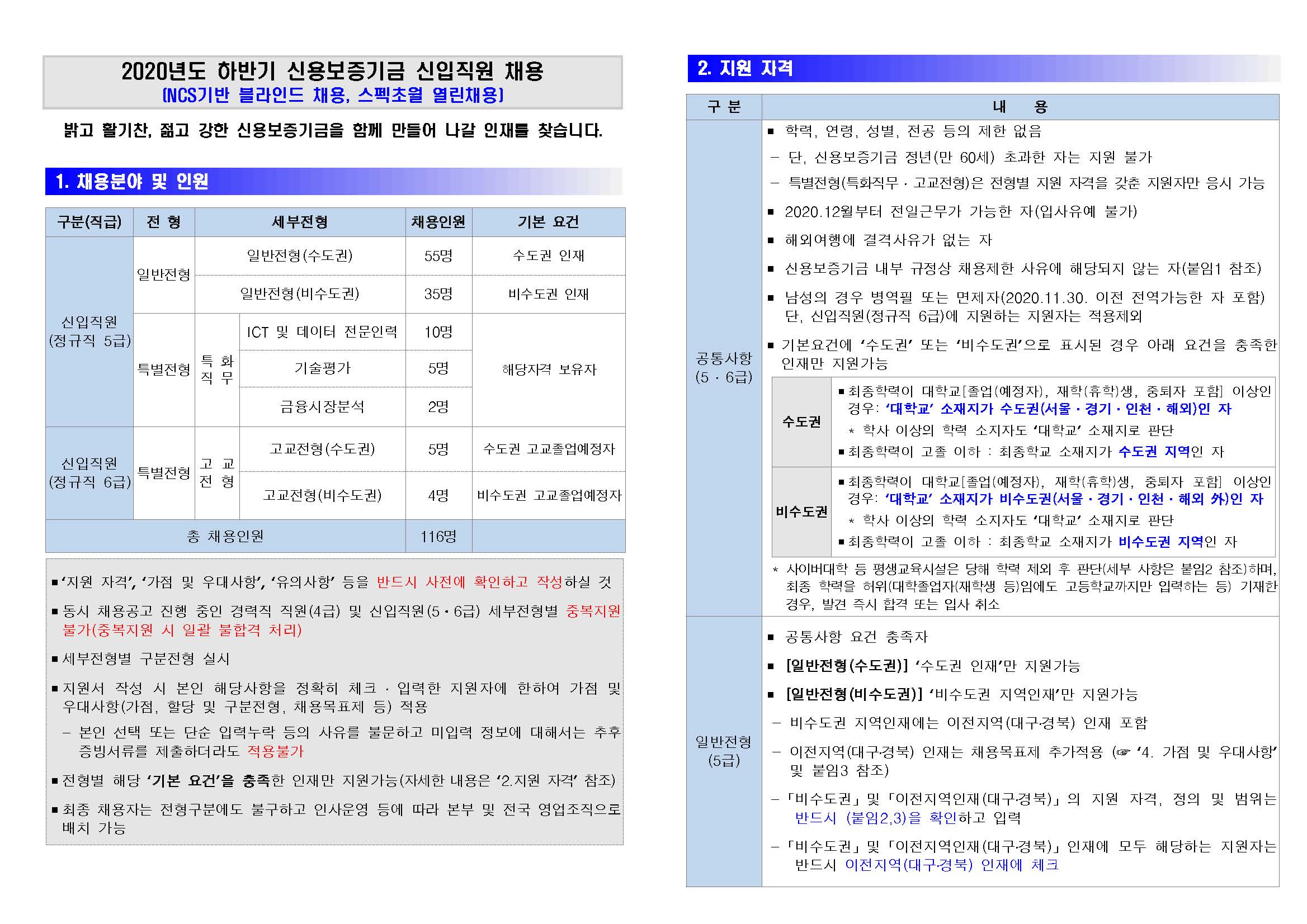 2020 하반기 신용보증기금 신입직원 채용(NCS기반 블라인드 채용)