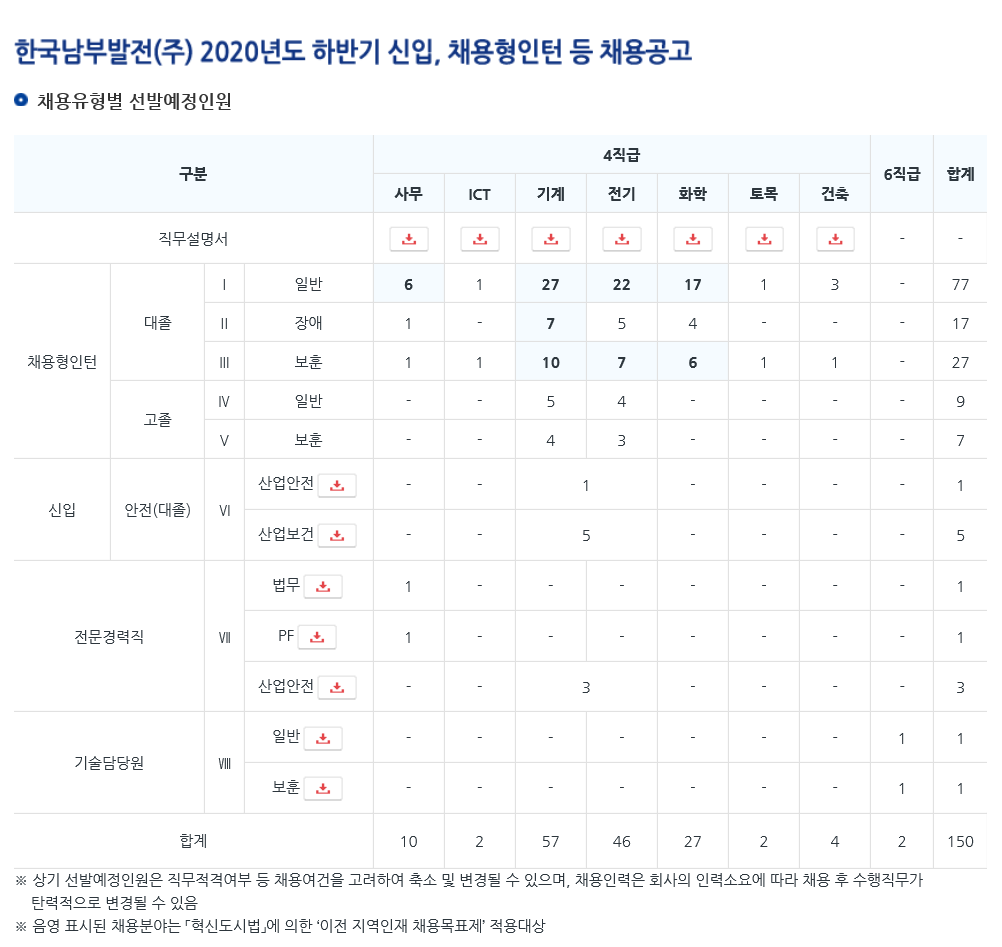 2020 하반기 남부발전소 신입, 채용형인턴 채용공고