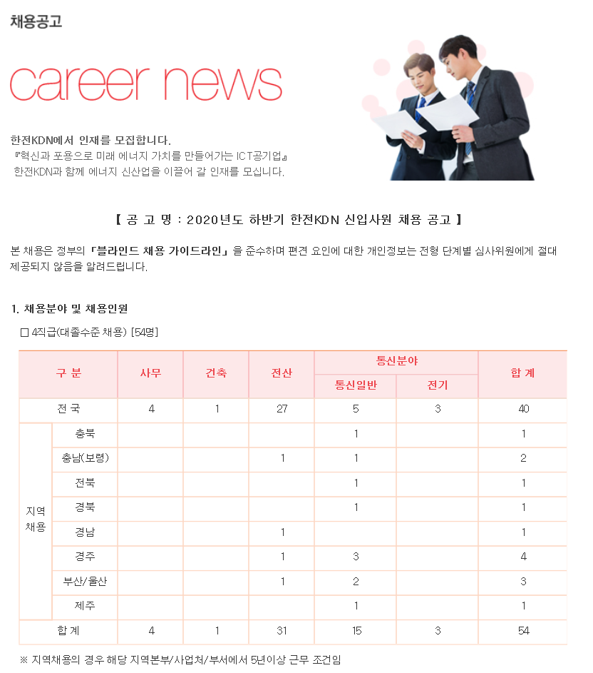 2020 한전KDN 하반기정규직 신입채용