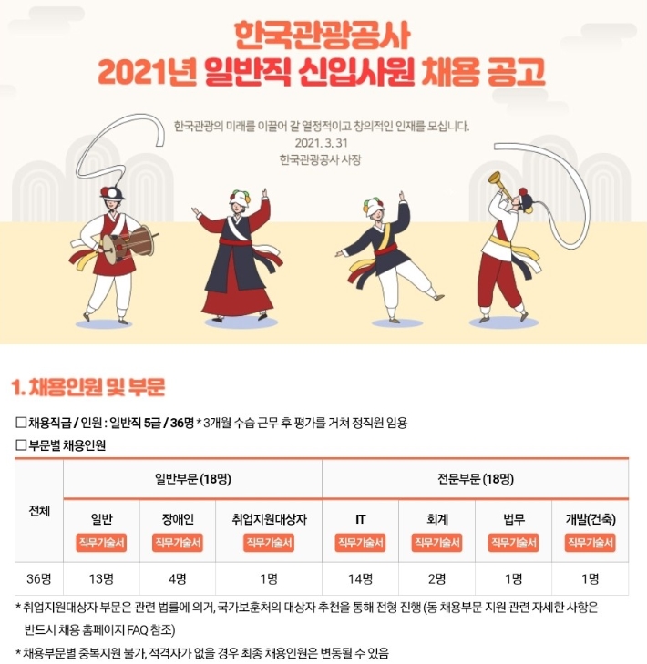 2021 상반기 한국관광공사 일반직 신입사원 채용 공고