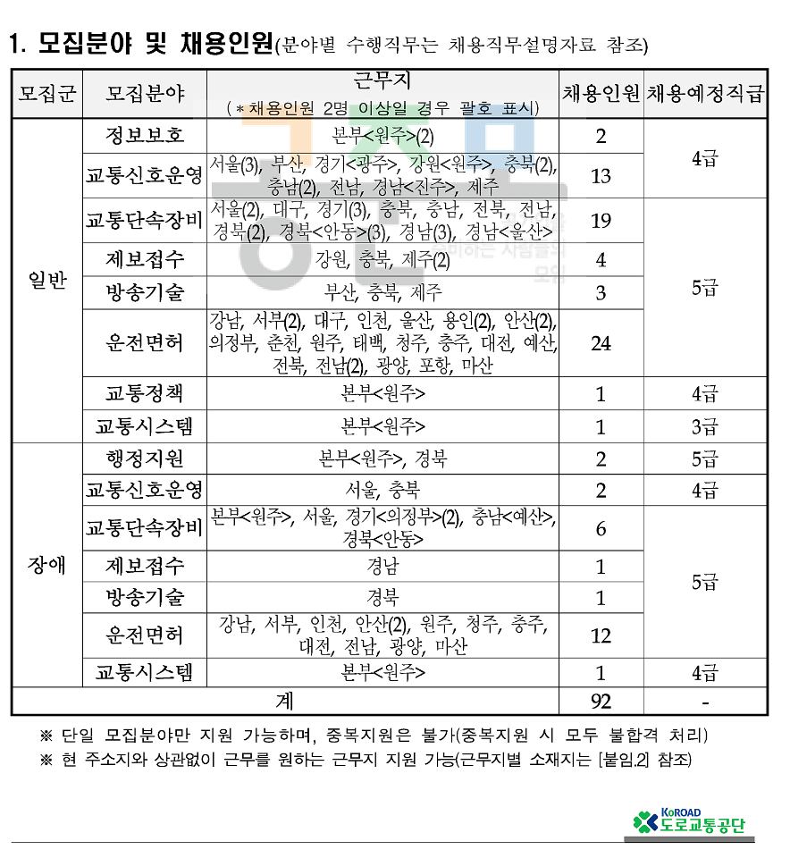 2021년도 도로교통공단 교통직(무기계약직) 공개채용 공고
