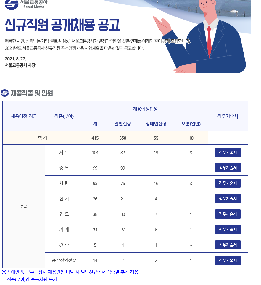 2021 서울교통공사 하반기 신규직원 공개채용