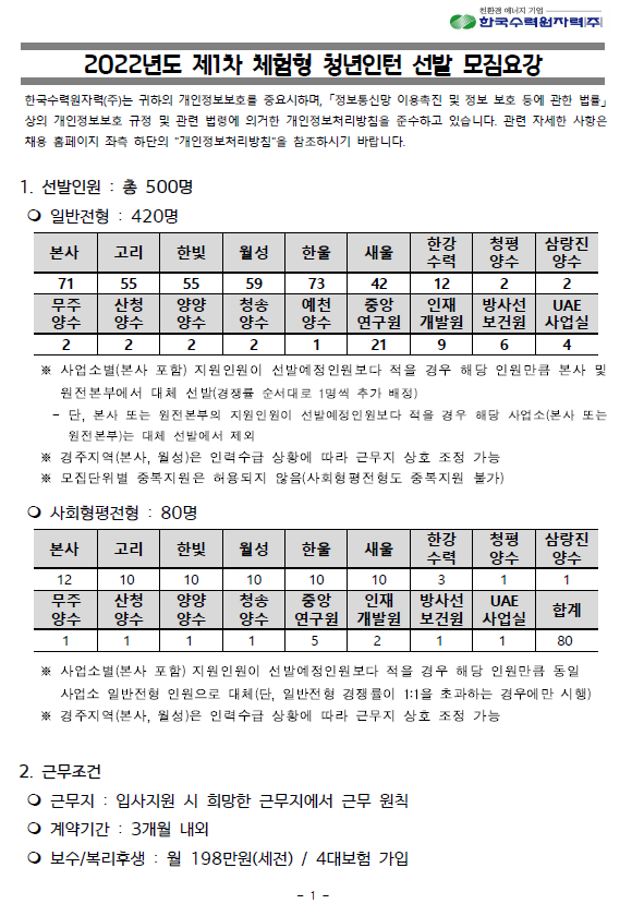 2022 상반기 한국수력원자력 체험형 청년인턴