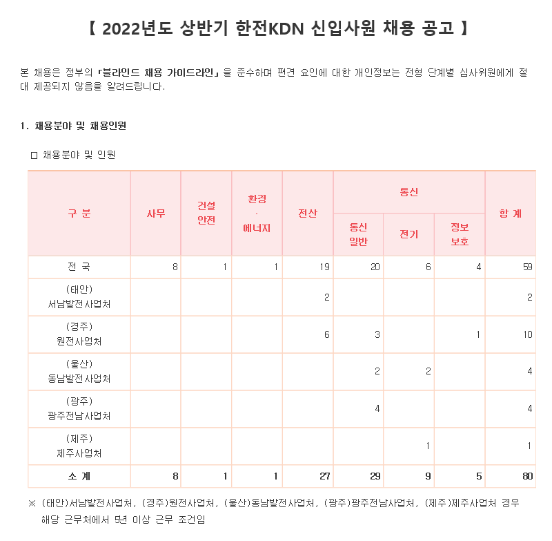 2022년도 상반기 한전KDN 신입사원 채용 공고