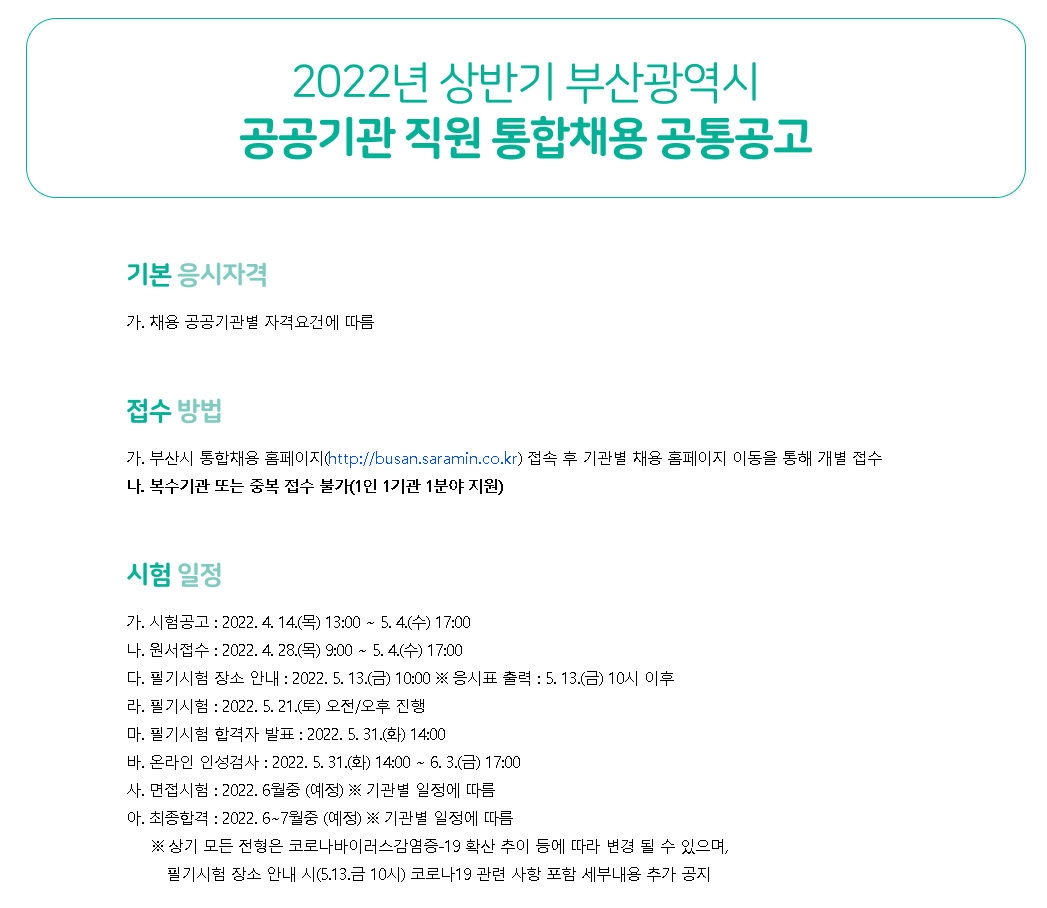 2022 상반기 부산광역시 공공기관 직원 통합채용공고