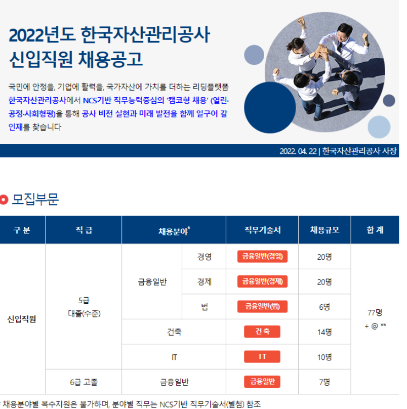 2022 상반기 한국자산관리공사(캠코) 정규직 신입 채용