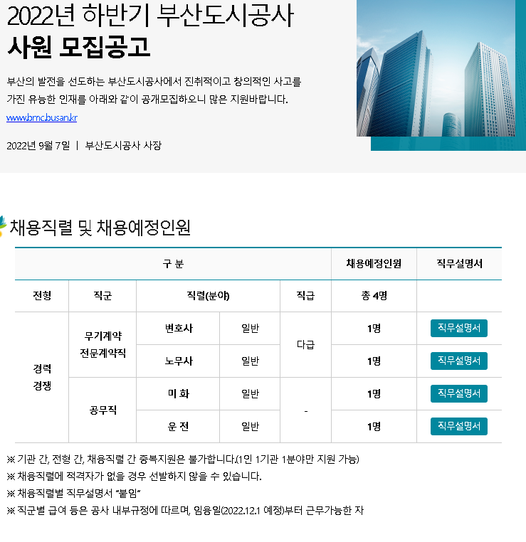 2022 하반기 부산도시공사 사원 채용공고