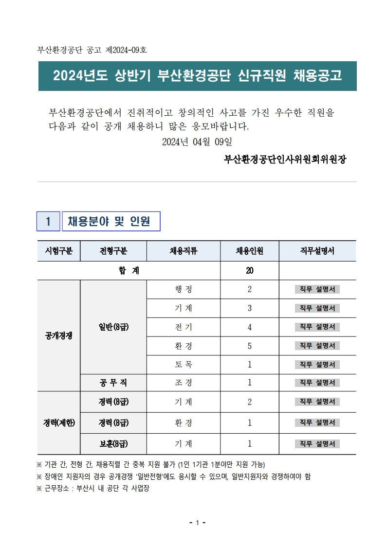 2024년 상반기 부산환경공단 신규직원 채용 공고