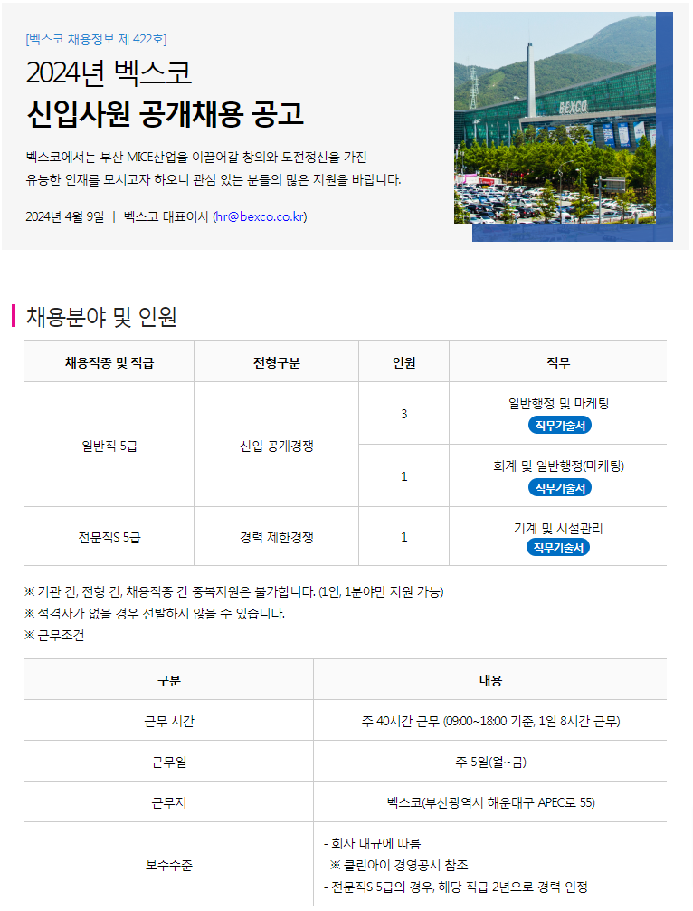 2024년 벡스코 신입사원 공개 채용 공고