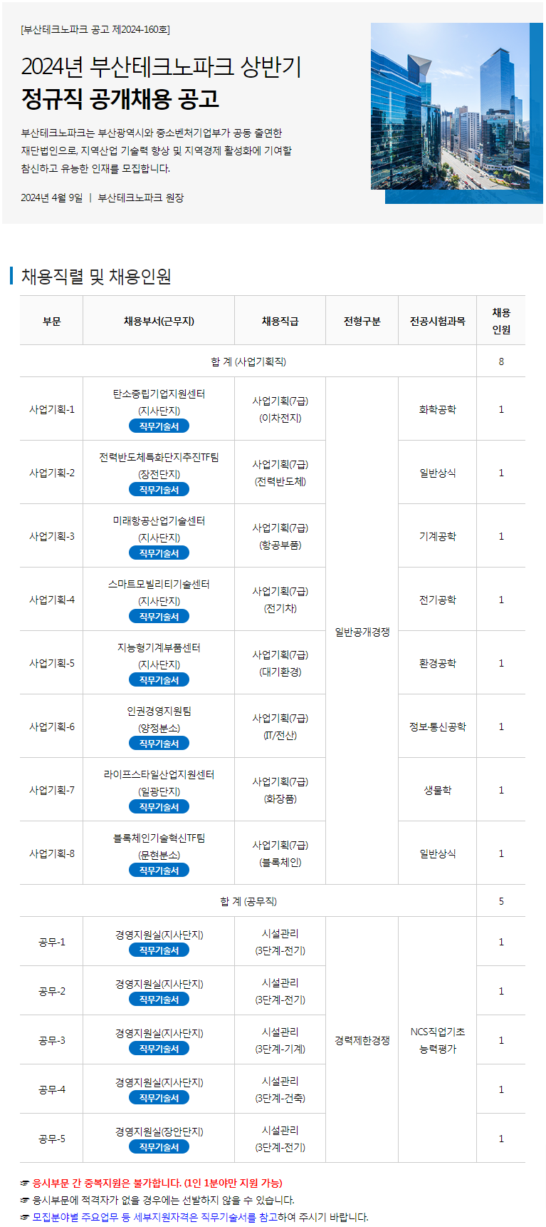 2024년 부산테크노파크 상반기 정규직 공개 채용 공고