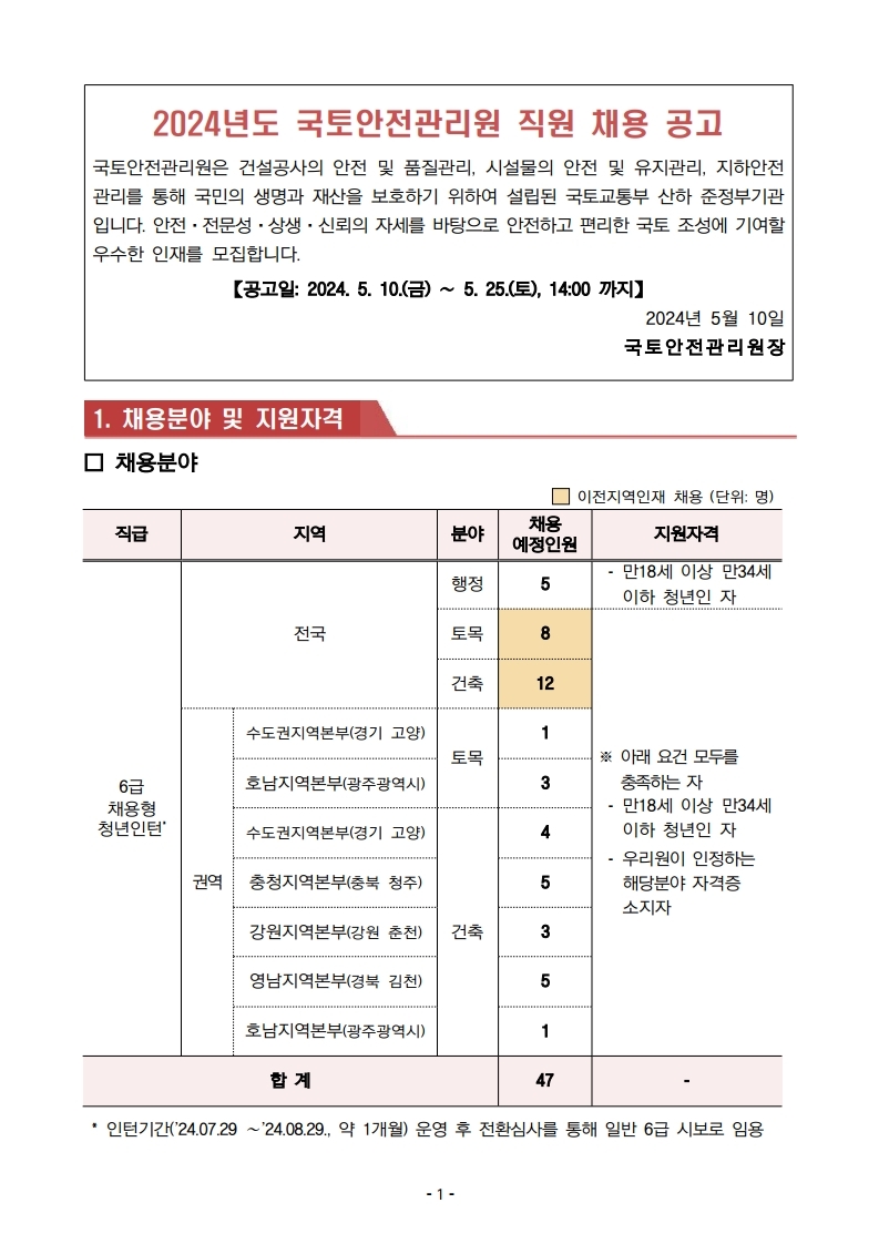 2024년 국토안전관리원 직원 채용 공고
