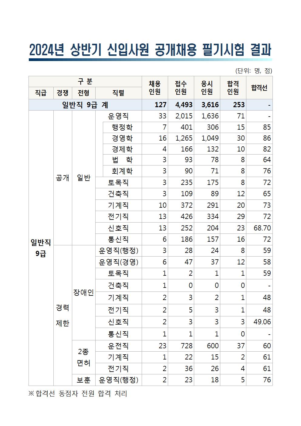 2024년 상반기 부산교통공사 신입사원 공개 채용 필기시험 결과