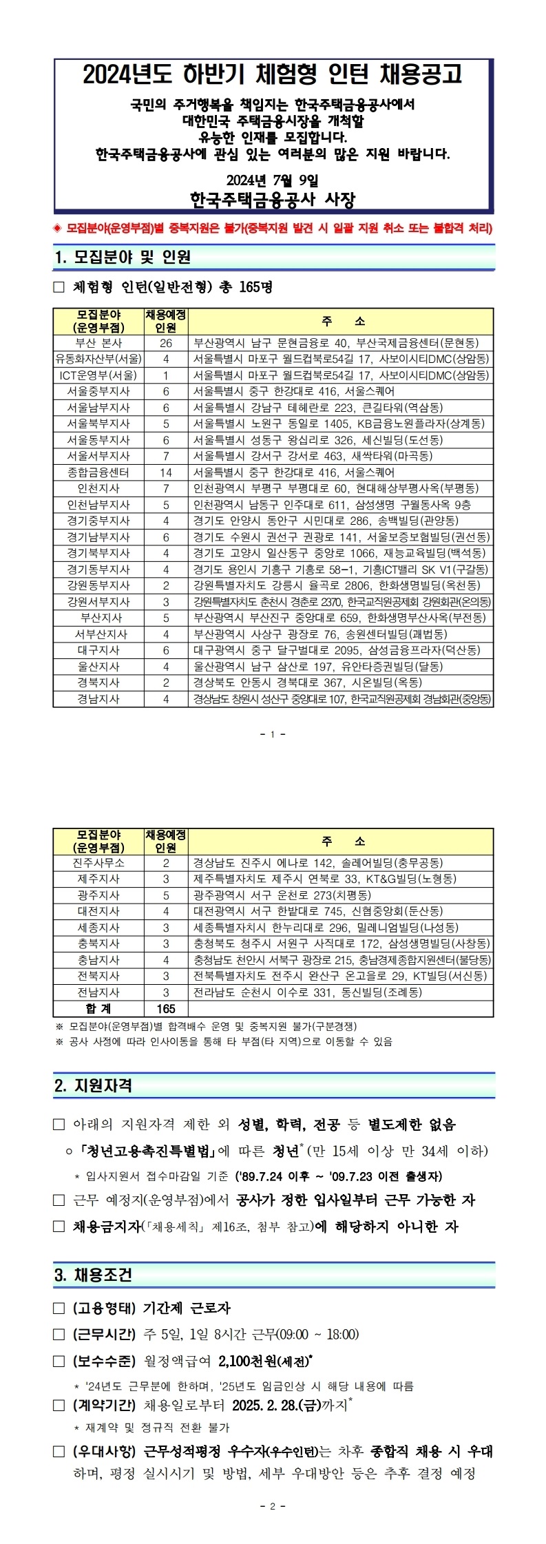2024년 한국주택금융공사 하반기 체험형 인턴 채용 공고