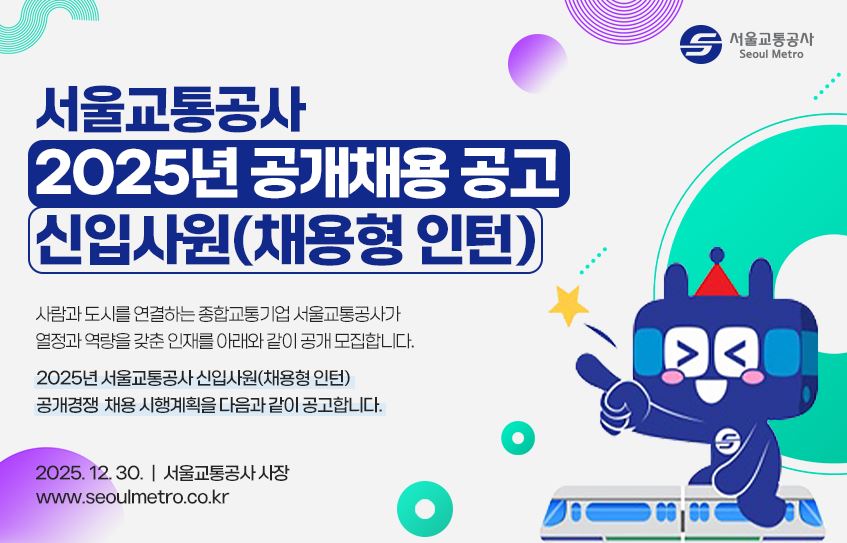 2025년 서울교통공사 신입사원(채용형 인턴) 채용 공고