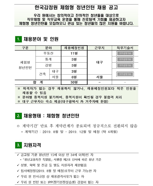 한국감정원 체험형 청년인턴 채용 (~ 07/19)