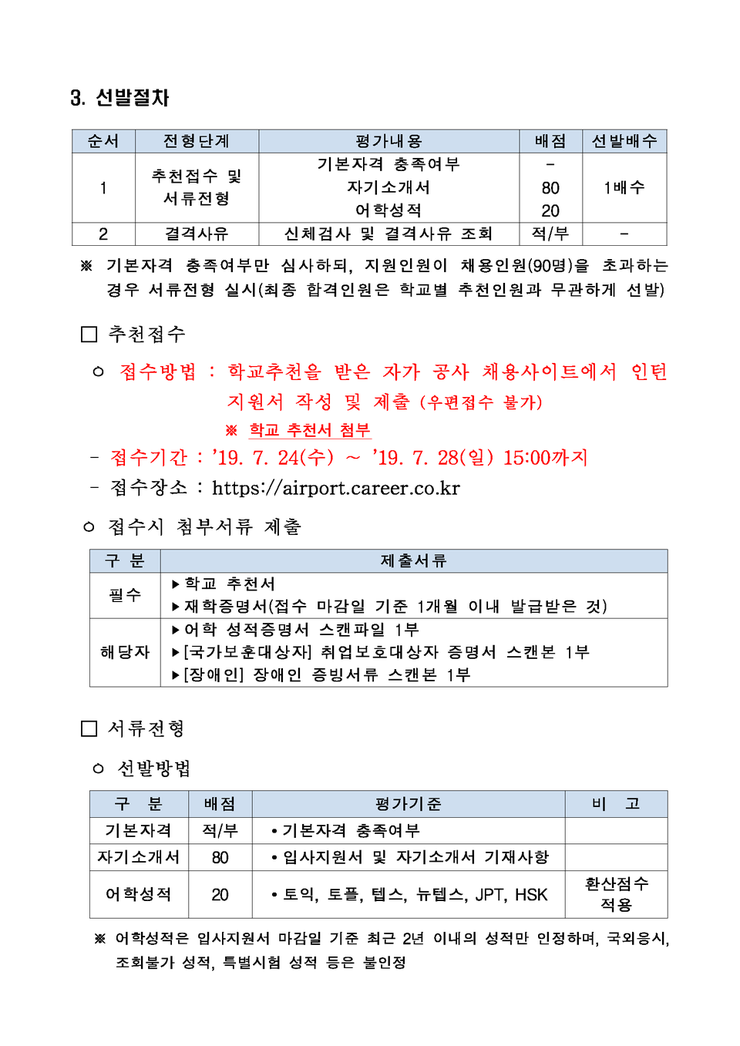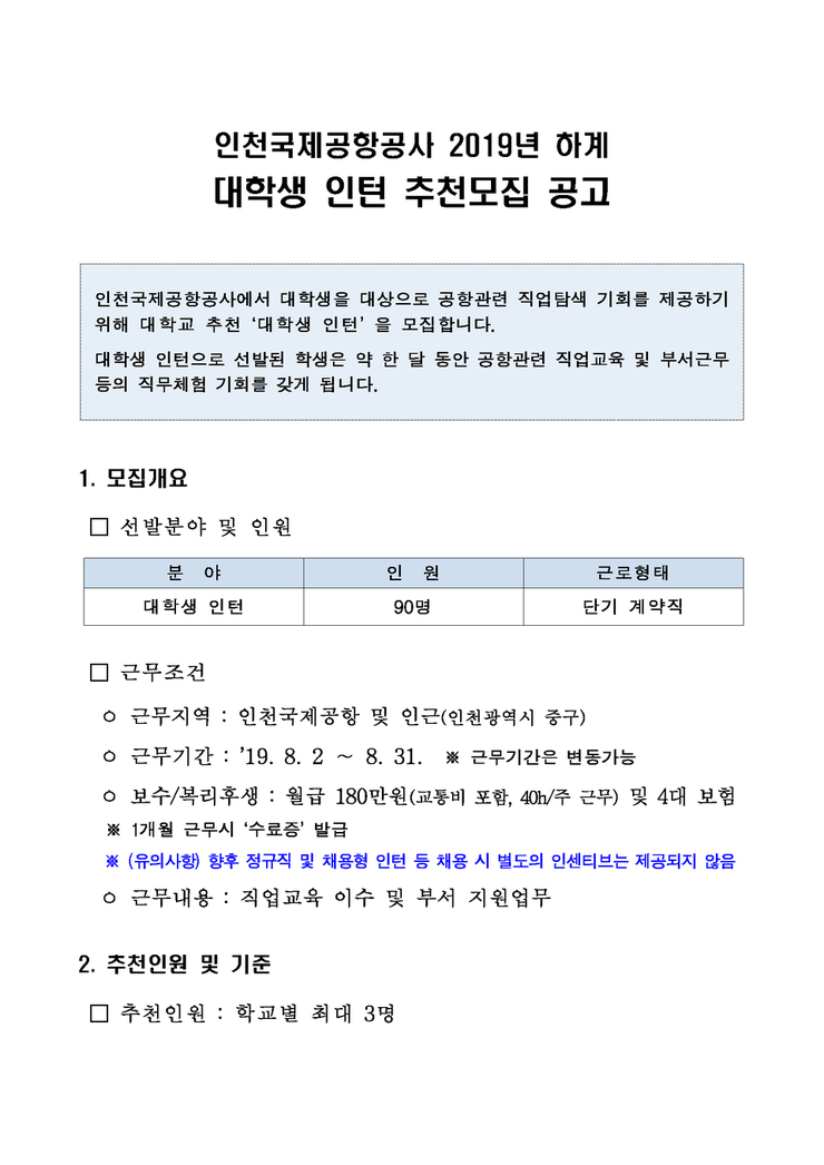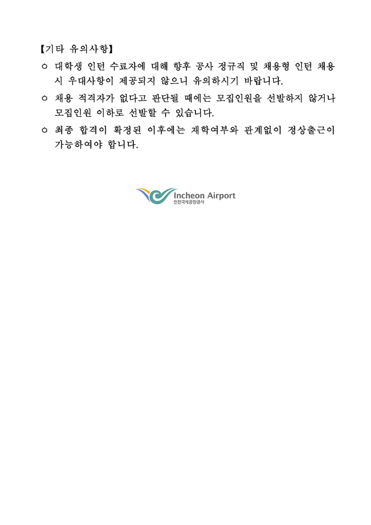 인천국제공항공사 하계 대학생 인턴 총 90명 채용 (~07/28)