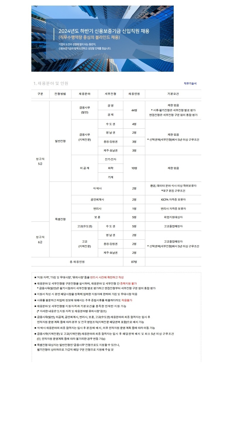 2024년 신용보증기금 하반기 신입직원 채용 공고