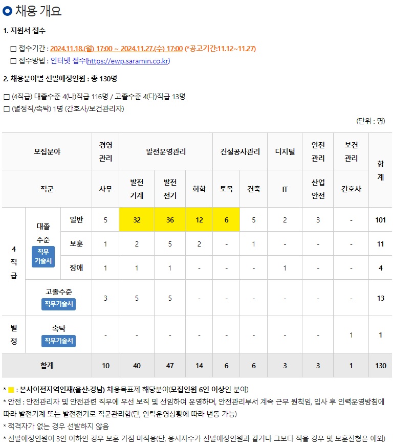 2025년 한국동서발전 신입사원(대졸수준 및 고졸수준, 별정직) 선발 공고
