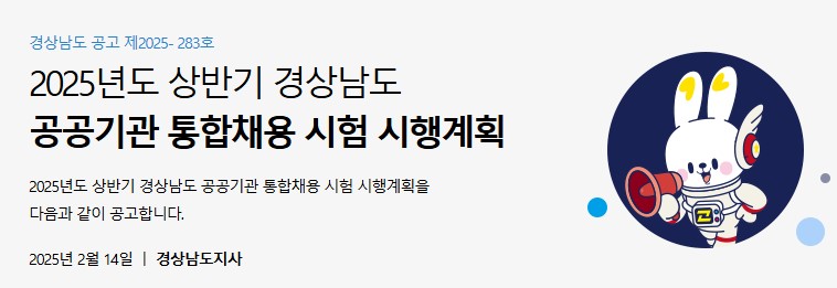 2025년 상반기 경남 공공기관 통합채용 시험 시행계획 공고
