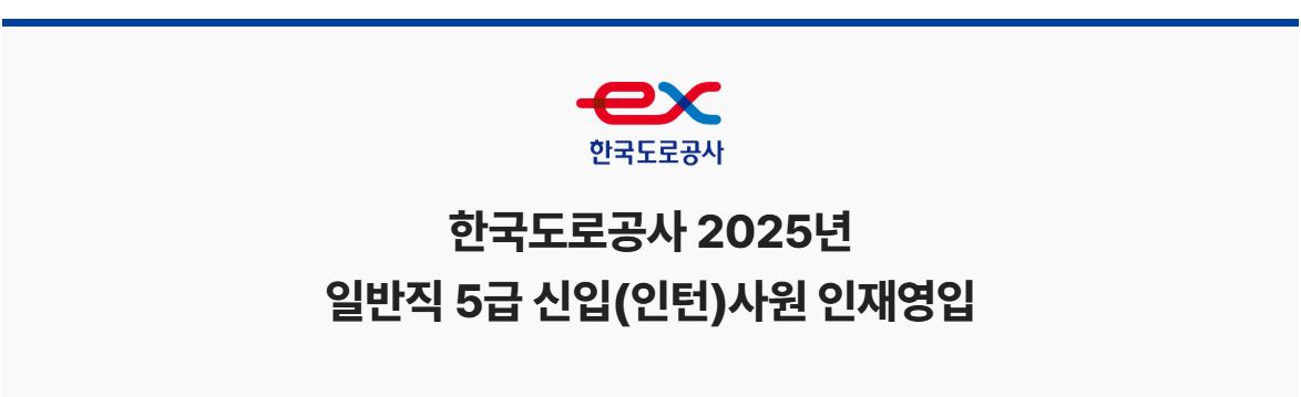 2025년 한국도로공사 일반직 5급 신입(인턴)사원 인재영입 공고