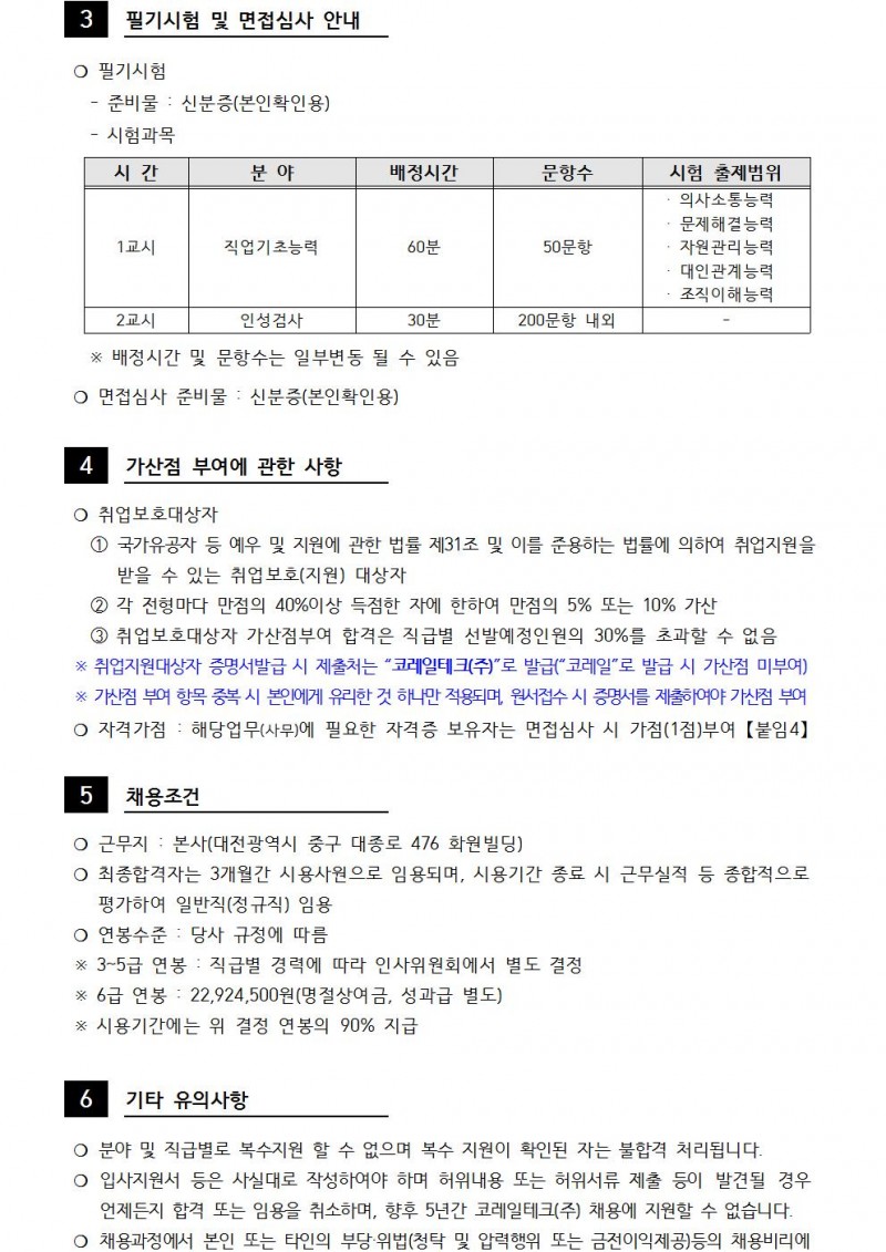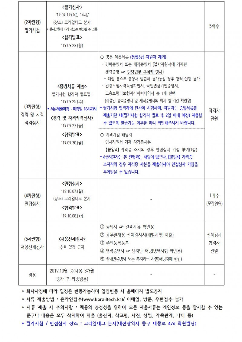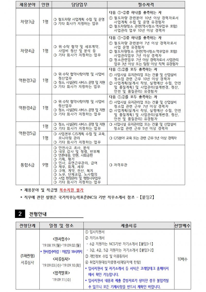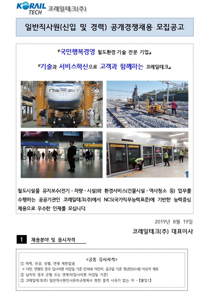 코레일테크 일반직사원(신입 및 경력) 공개경쟁채용 (~09/02)