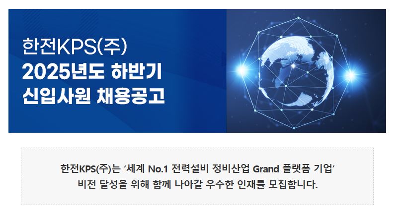 2025년 하반기 한전KPS 신입사원 채용 공고