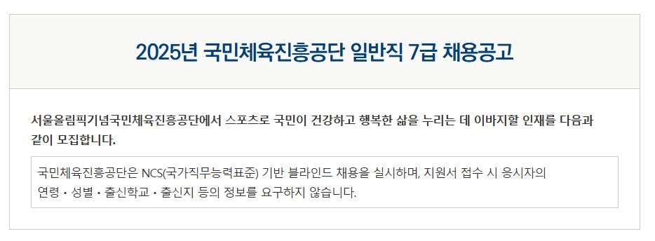 2025년 국민체육진흥공단 일반직 7,8급 채용 공고
