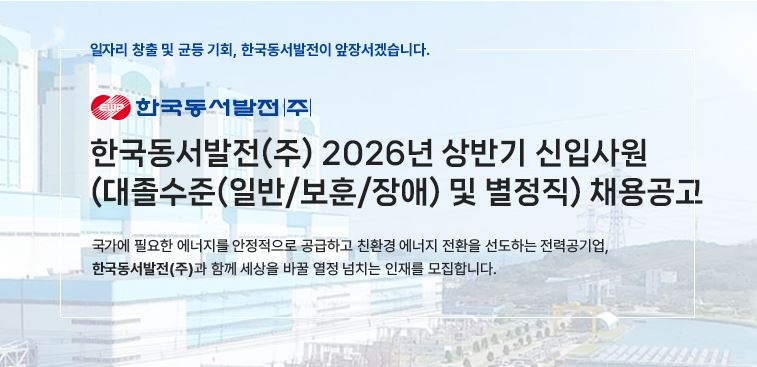2026년 상반기 한국동서발전 신입사원(대졸수준 및 별정직) 채용 공고