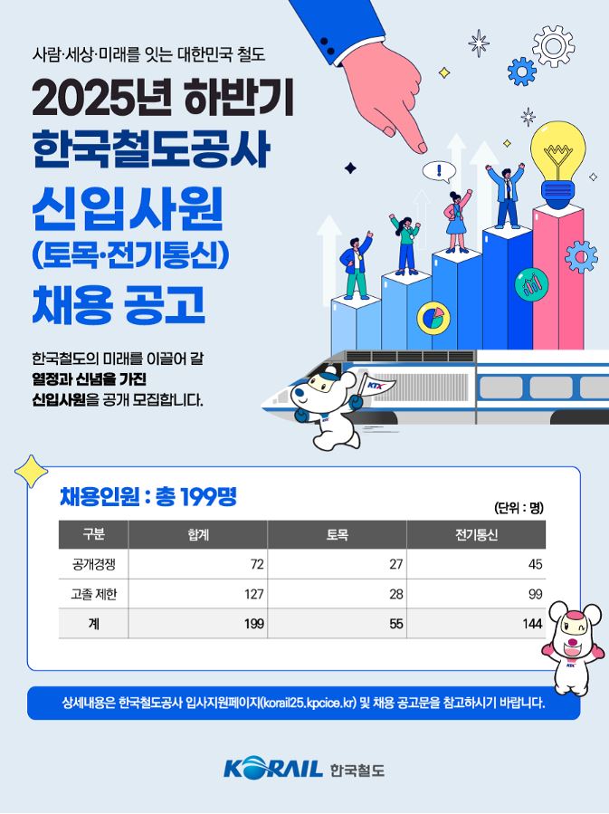 2025년 하반기 코레일/한국철도공사 신입사원(토목·전기통신) 채용 공고