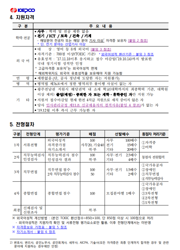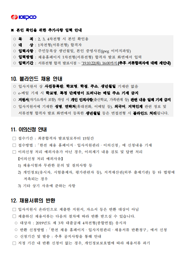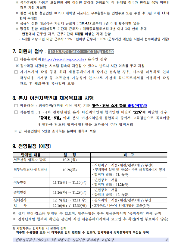 한국전력공사] 2019년도 제 3차 대졸수준 신입직원 채용 (~10.14)