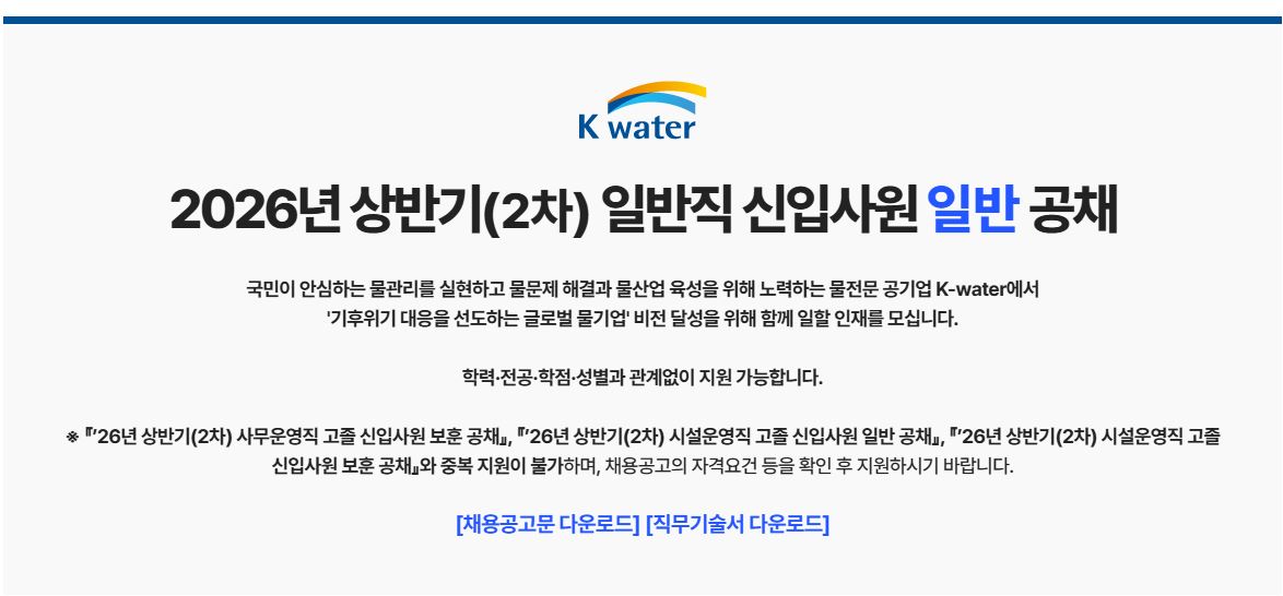 2026년 상반기(2차) 한국수자원공사 일반직 신입사원 일반 공채